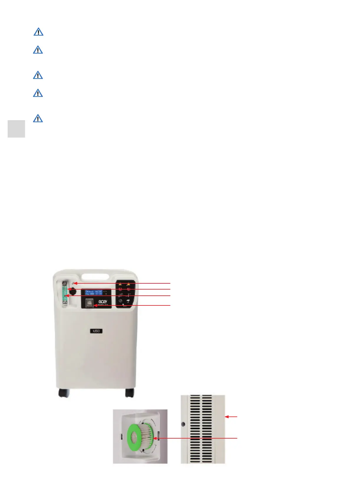 AVVERTENZE: Questo concentratore di ossigeno e tutti i suoi componenti (comprese cannule, connessioni