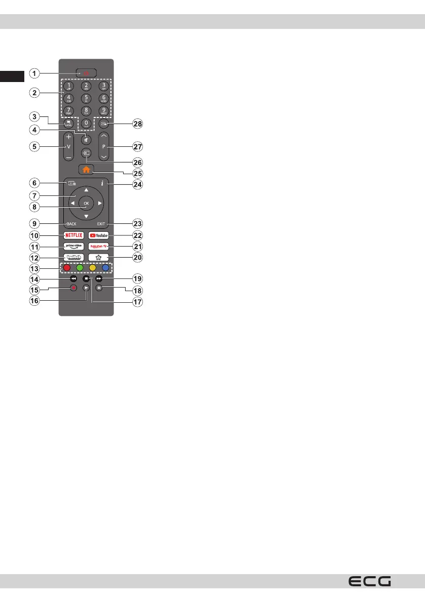 2. Numerische Tasten: Schaltet den Sender um, gibt eine Zahl oder