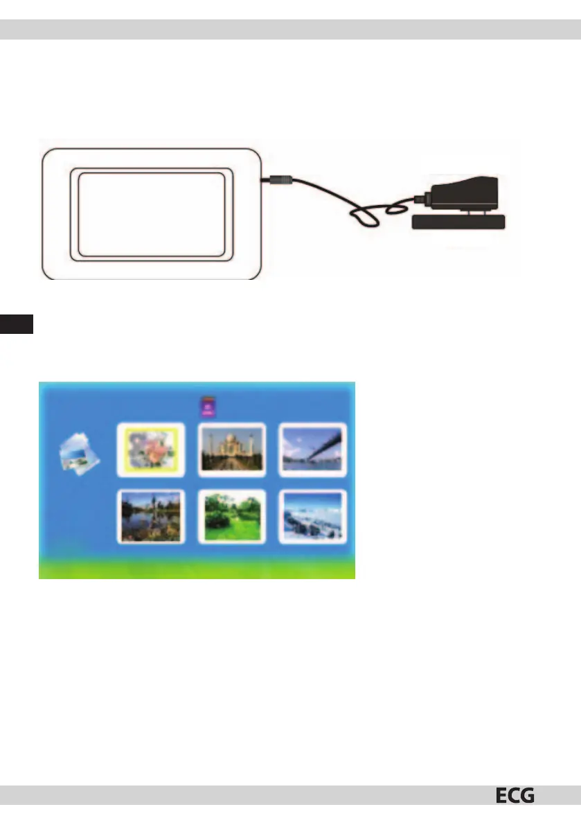 Składamy podstawkę iwkładamy do niej ramkę fotograczną, podłączamy zasilacz do ramki fotogracznej