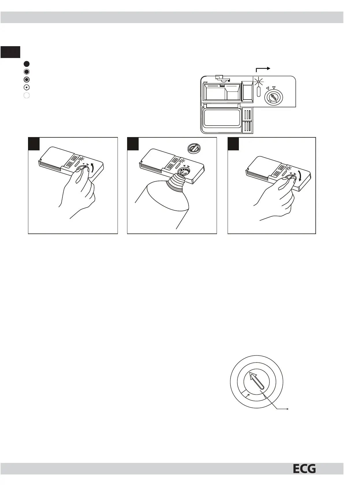 1. Dávkovač otevřete otočením víčka kšipce „open“ (doleva) avíčko vyjměte.