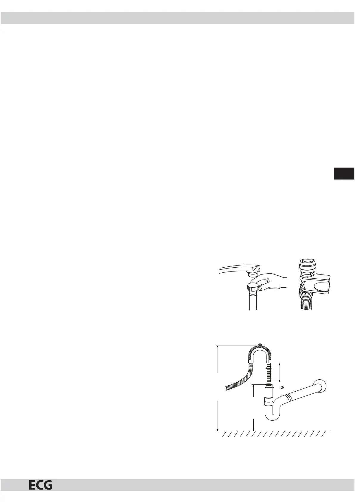 • Lai atvieglotu uzstādīšanu, padeves un noteces šļūtenes var pievienot no kreisās un labās puses.