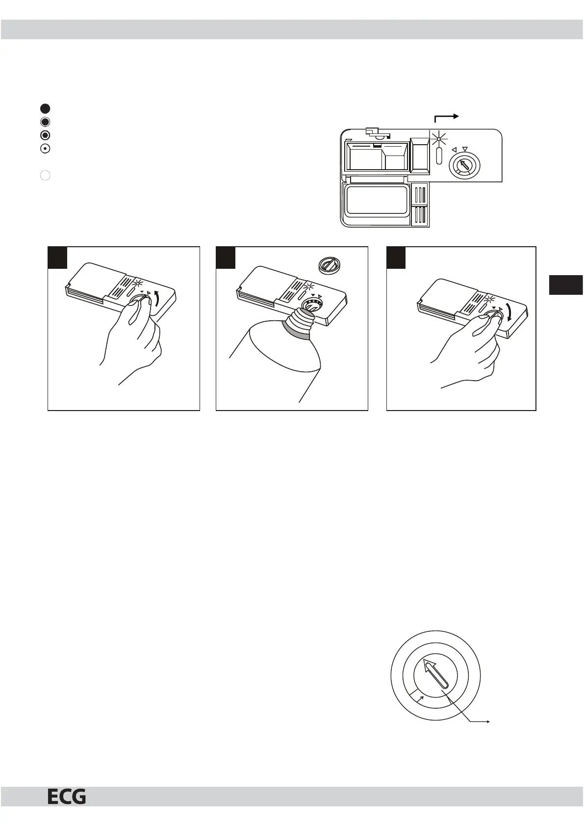 skalošanas līdzekļa indikators kļūst pilnīgi tumšs. Skalošanas līdzekļa tvertnes tilpums ir 140 ml.
