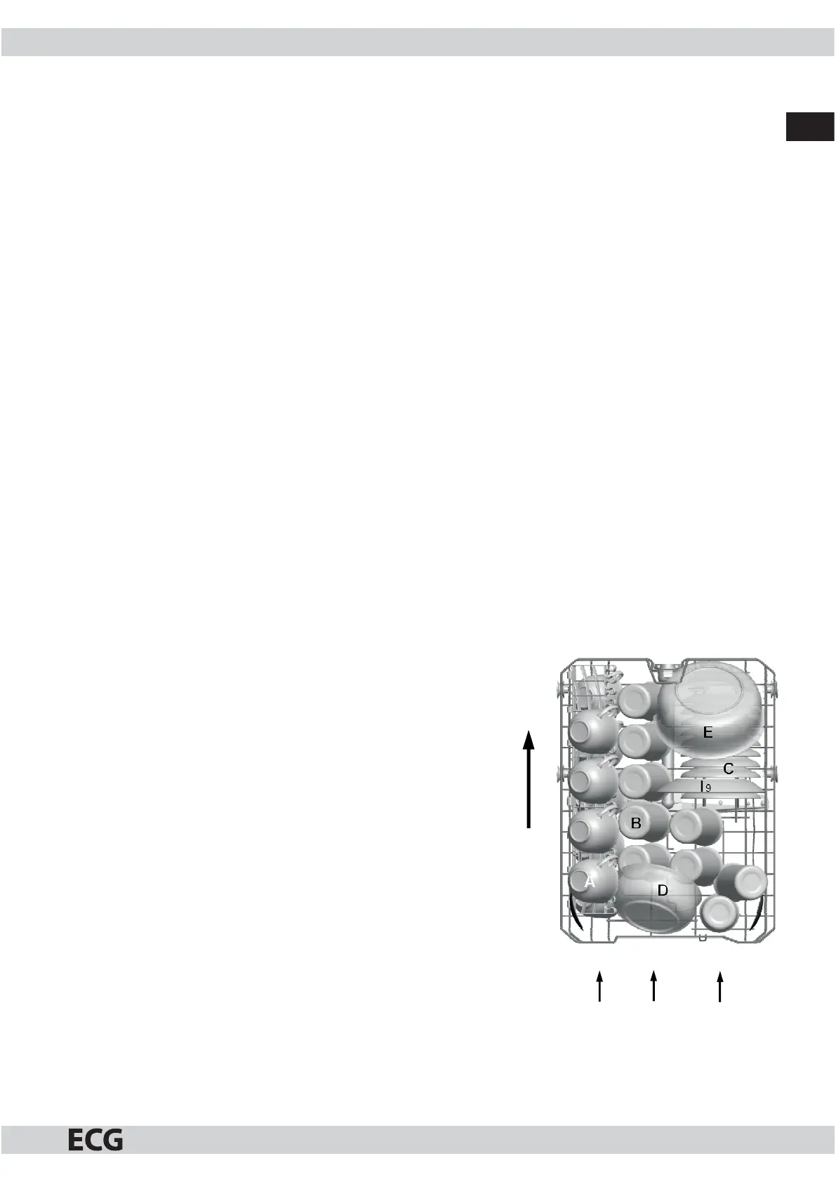 – Všechny předměty urovnejte tak, aby se ostřikovací ramena mohla volně pohybovat.