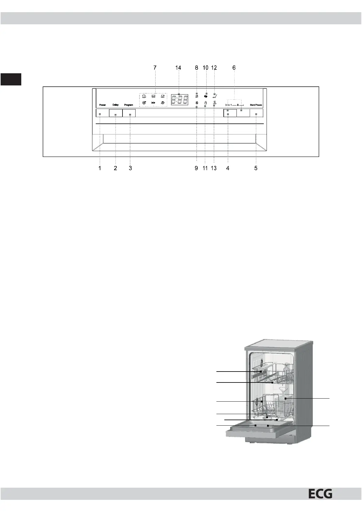 14. Digitálny displej: Zobrazuje zostávajúci čas programu, chybové kódy aodpočet odloženého štartu.