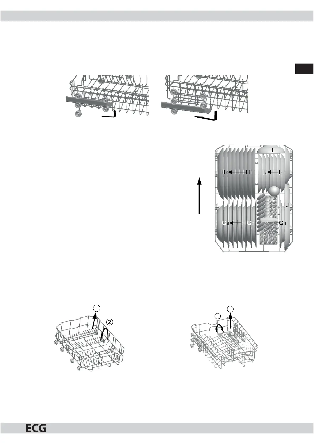 Výšku horného koša je možné upraviť tak, aby sa vytvorilo viac miesta pre väčšie kusy riadu buď vhornom,