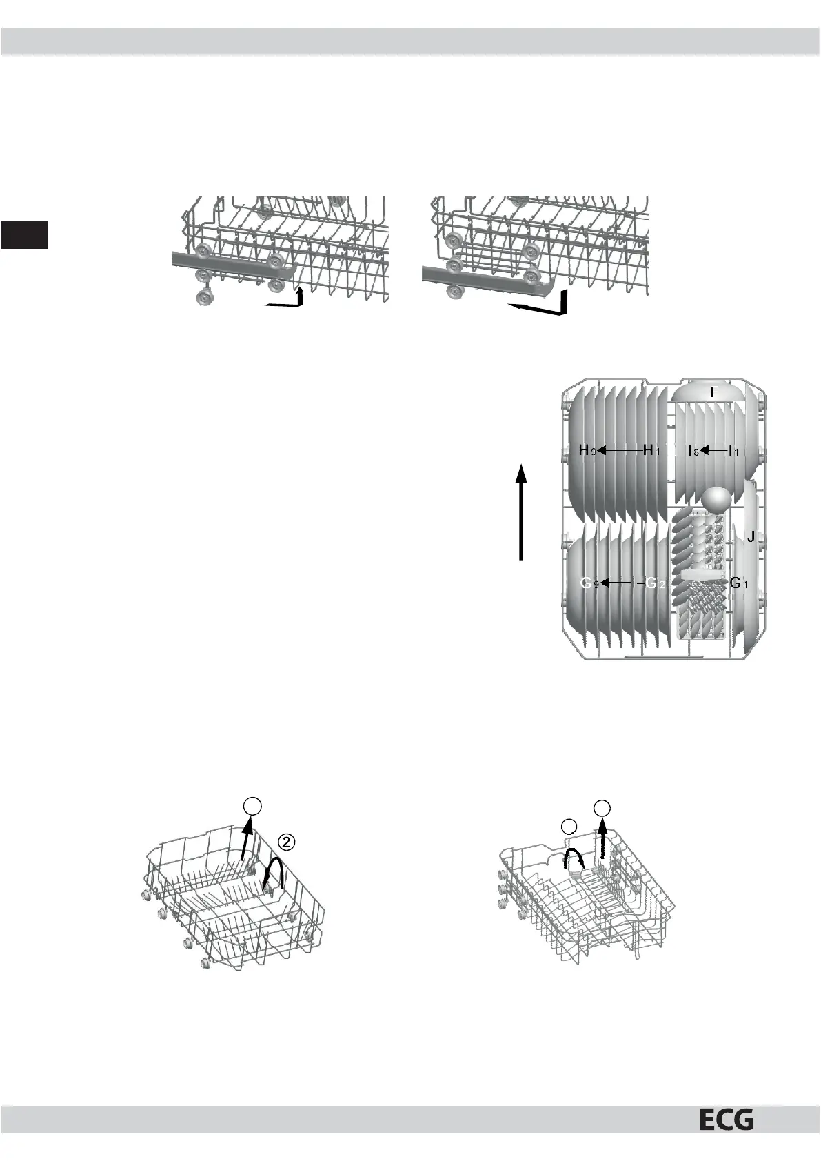 di erent heights. Load the long objects, serving and table cutlery and knives in the basket in such away that
