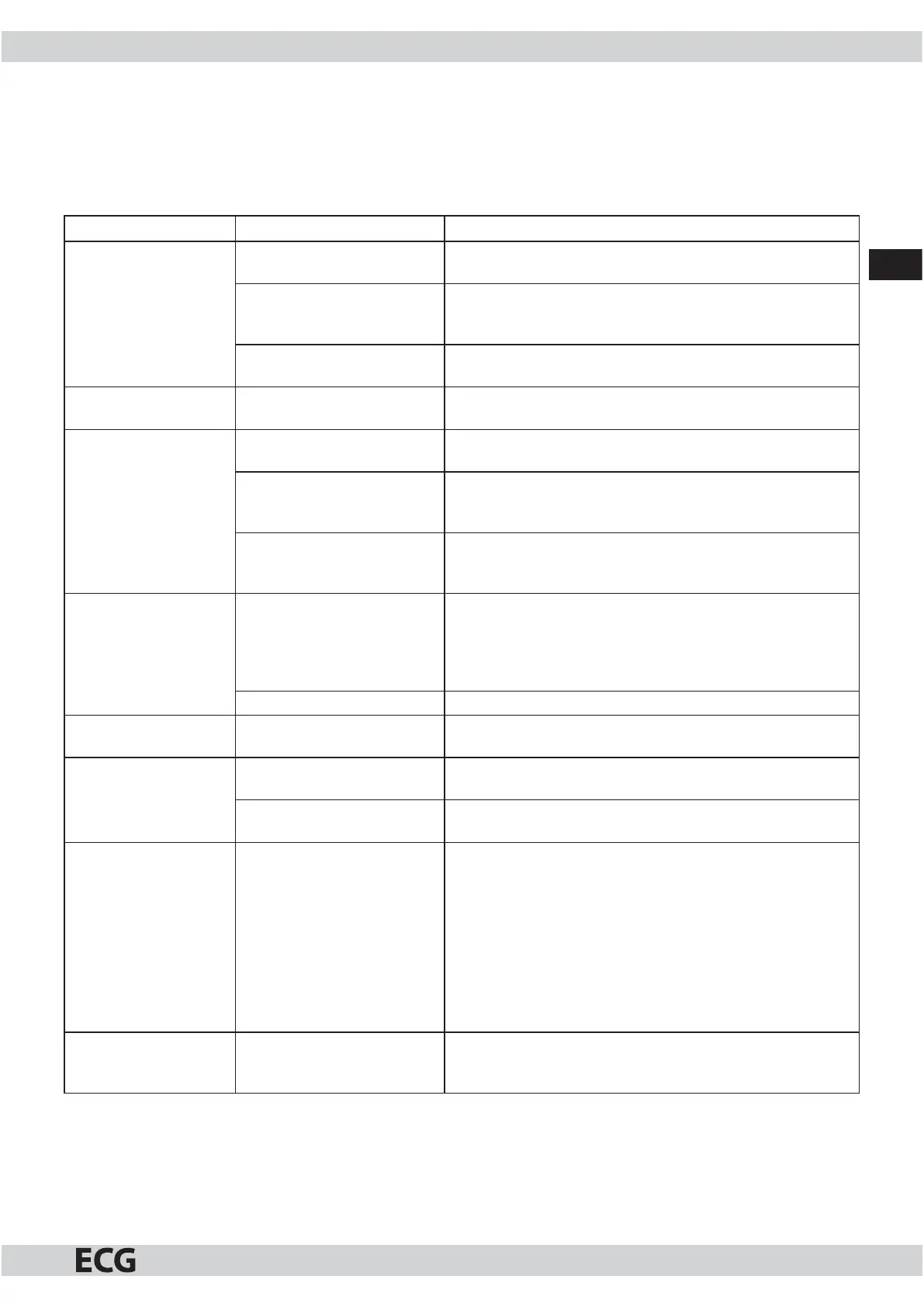 The commendations in the following table may help you solve the problem. If the problem persists, contact