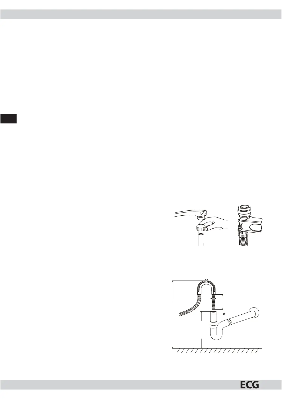 • Kad būtų paprasčiau įrengti, vandens tiekimo ir išleidimo žarnas galima jungti iš kairės ir dešinės pusės.