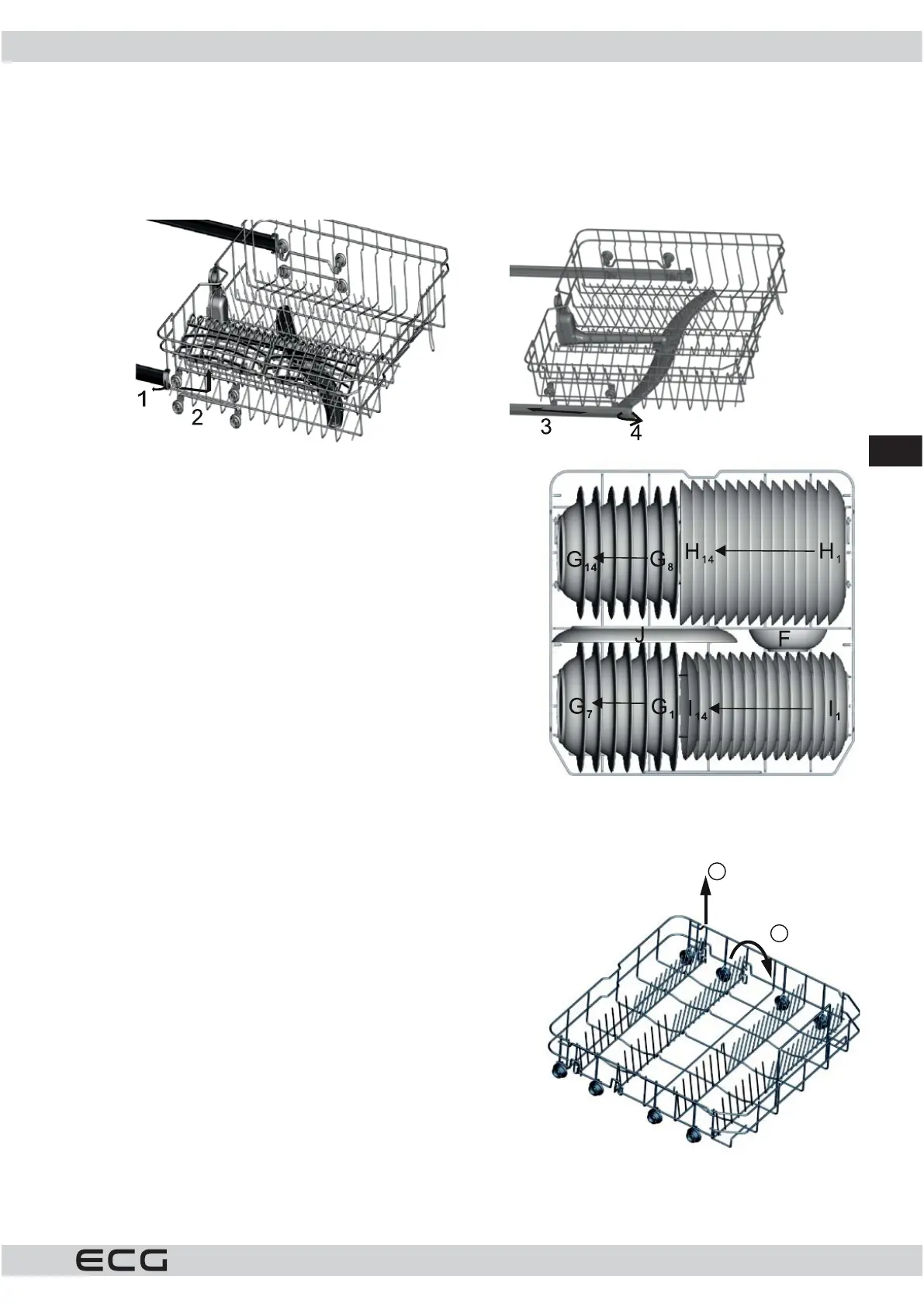 vspodnji košari. Višino zgornje košare nastavite zvstavitvijo kolesc košare vvodila, ki so nameščena na različnih