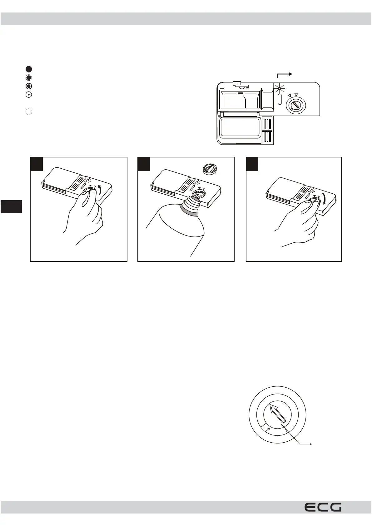 1. Otvorite dozator okretanjem poklopca usmeru strelice „open“ (ka levo) iskinite poklopac.