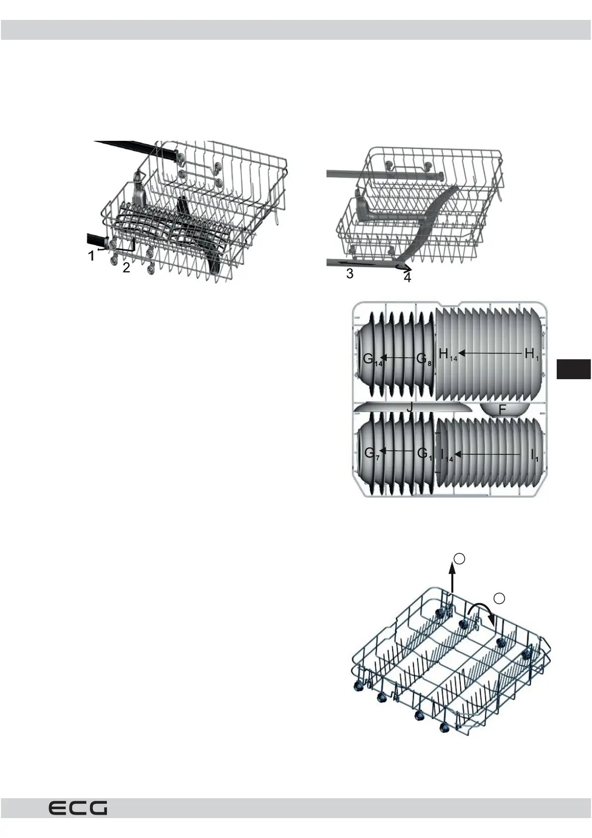 korvil. Ülemise korvi kõrgust saate reguleerida sisestades korvi rullikud erinevatel kõrgustel asuvatesse