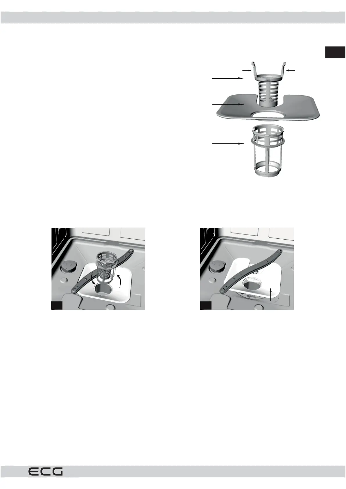 • Myčka se nesmí nikdy používat bez ltru! Nesprávné uložení ltru může snížit výkon stroje apoškodit