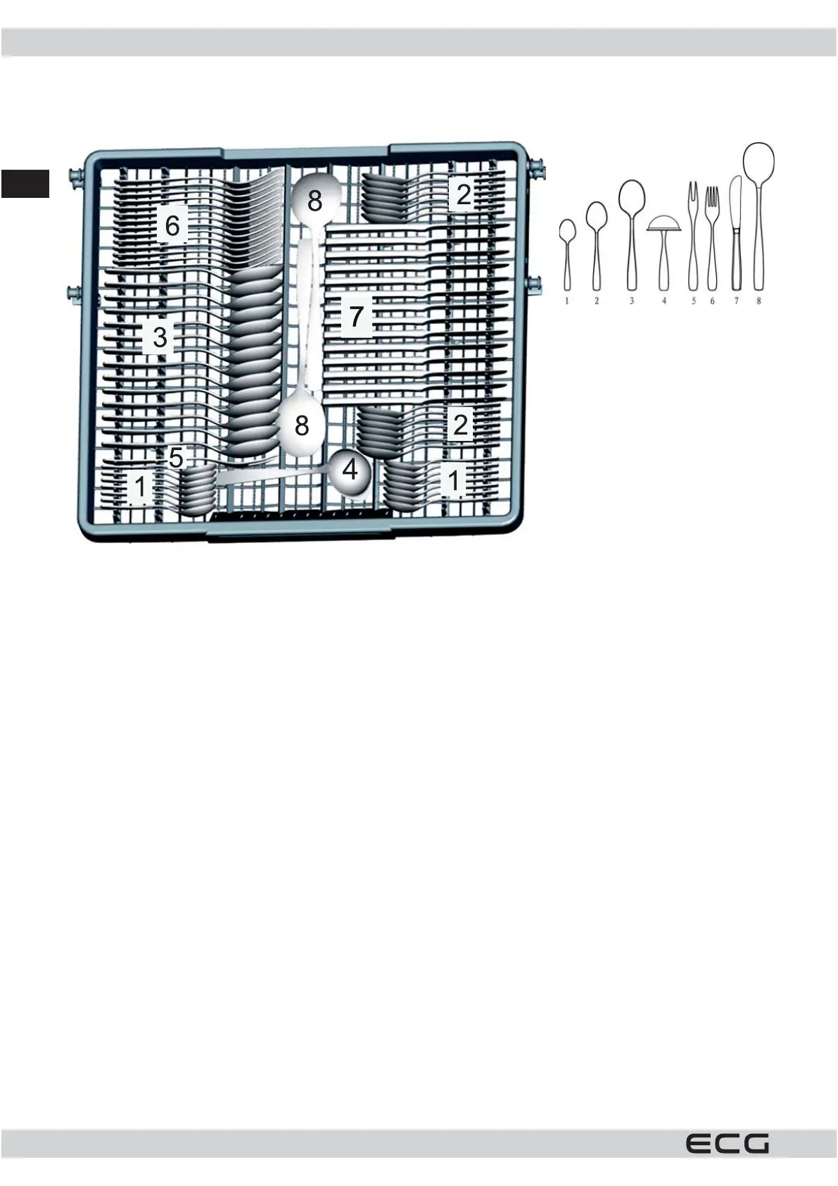 Príbory usporiadajte na tácky naznačeným spôsobom. Príbory umiestnite tak, aby mohla voda voľne pretekať.
