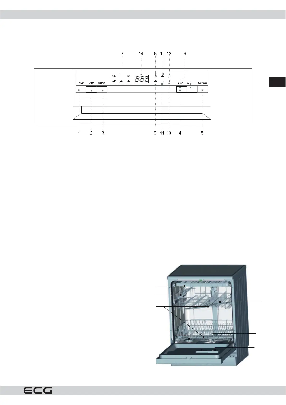 6. Gyerekzár: A két gomb egyidejű lenyomásával (3 mp) lezárja a mosogatógép vezérlését. Ha