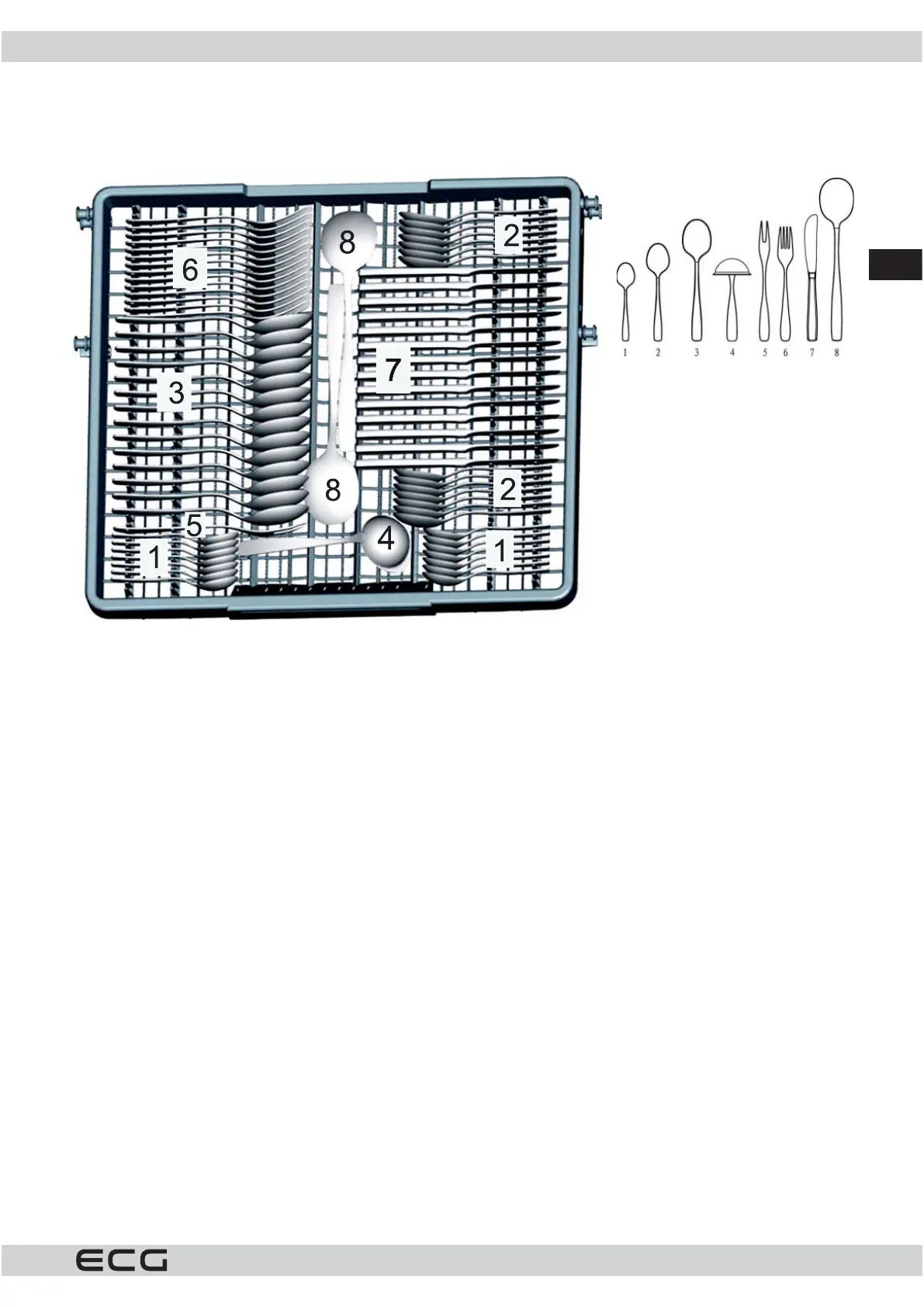 Az evőeszközöket helyezze el az alábbi módon. Az evőeszközöket helyezze el úgy, hogy a víz szabadon