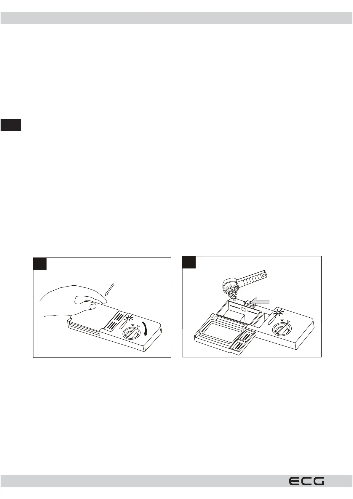 Use only detergents designed for use in dishwashers. Store detergents in a dry and clean place. Pour the