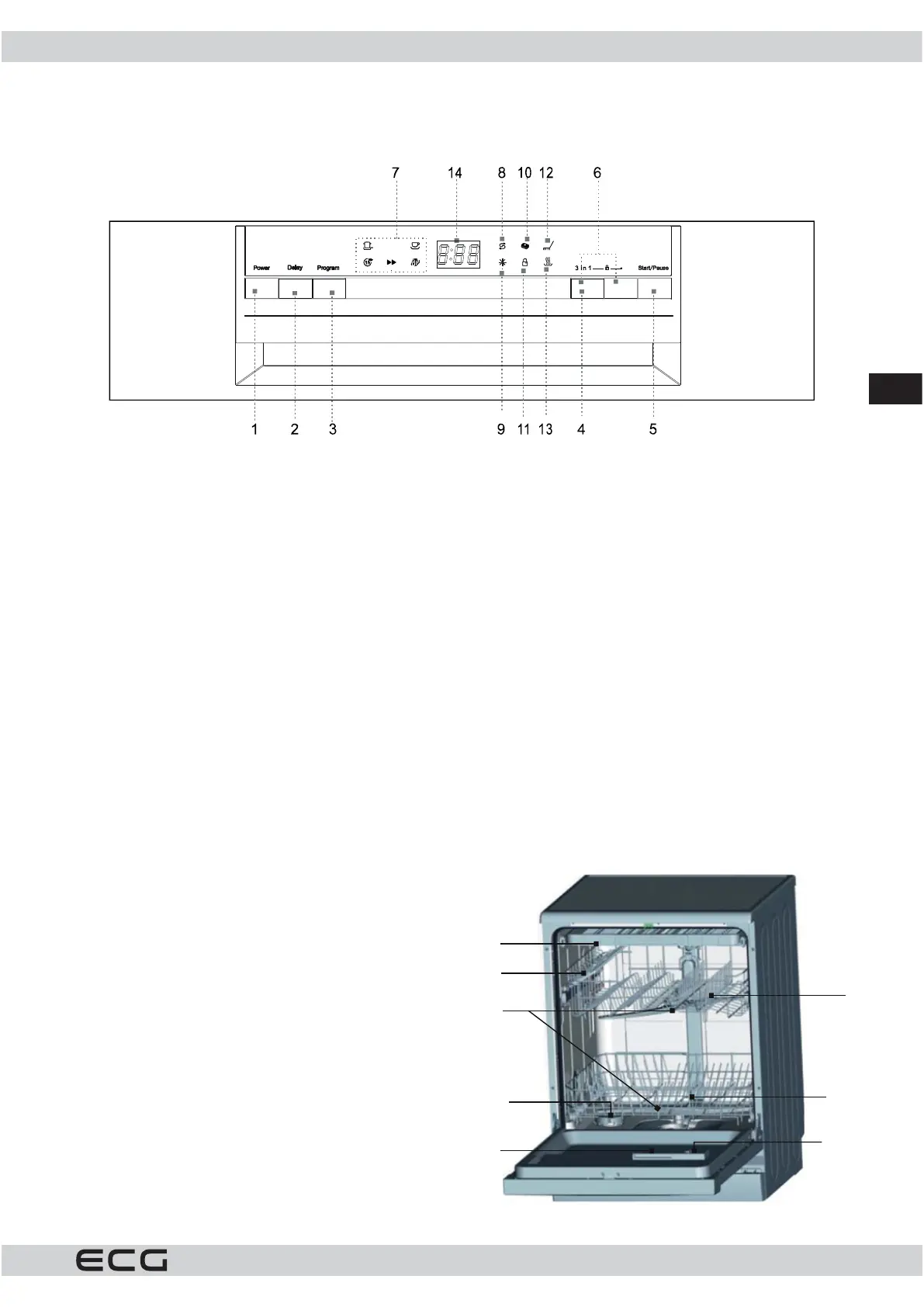 13. Kontrolna žaruljica sušenja: Svijetli kada perilica sušilica suši posuđe.