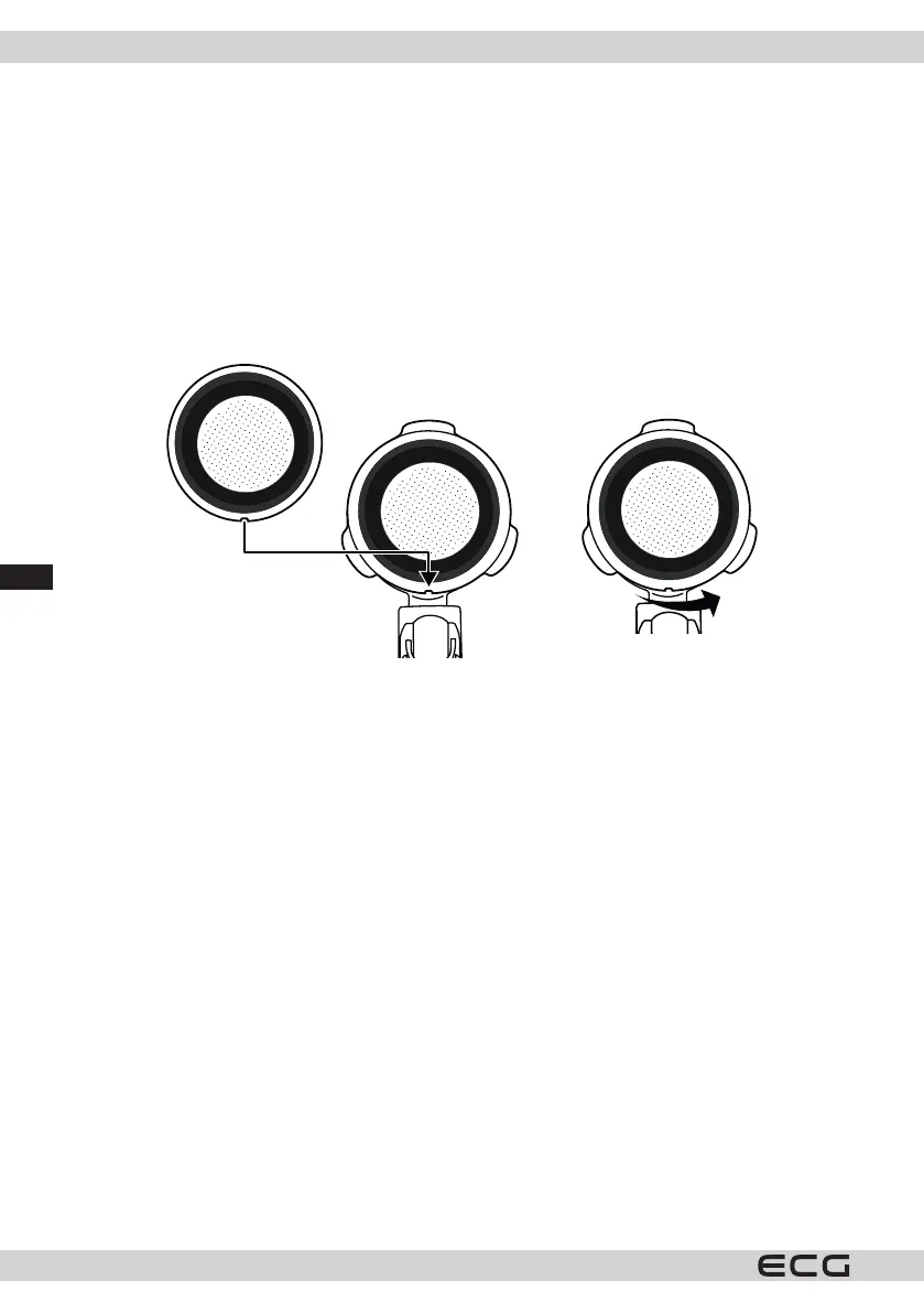 Radziņš ar metāla kausu kārtīgi jānostiprina tvaika galvā. Pagrieziet radziņu pretēji