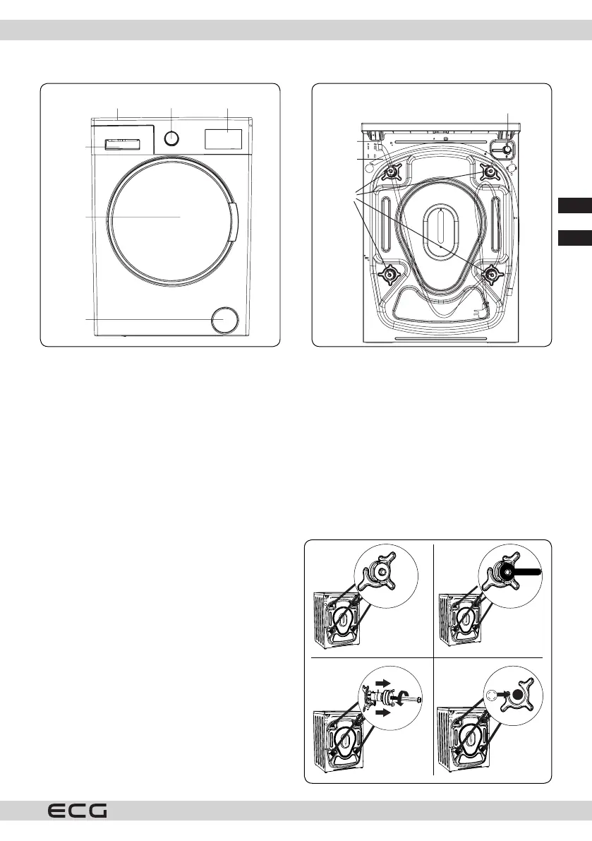 1. Prije pokretanja perilice, uklonite 4 transportna