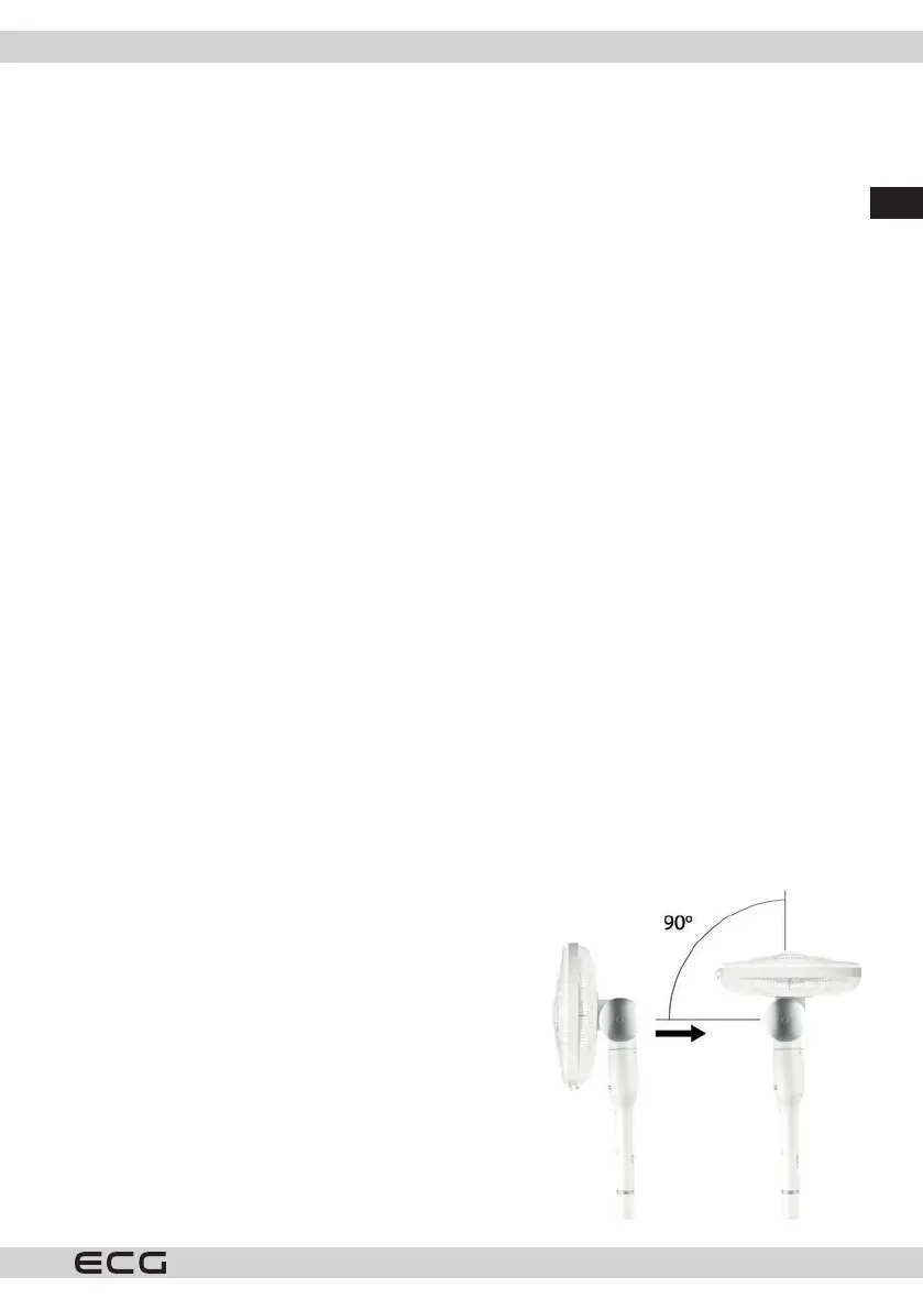 Ventilátor je možné manuálne naklopiť až o 90°, pozrite obrázok