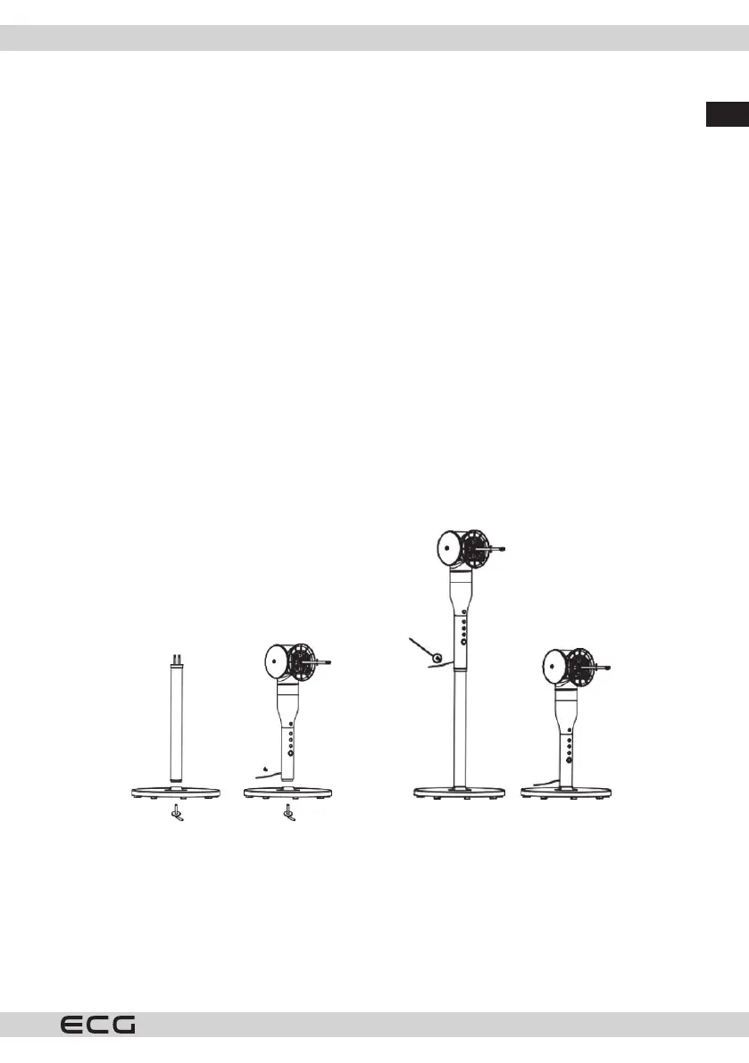 Upozornění: Ventilátor smí být používán pouze tehdy, je-li řádně a kompletně sestaven, včetně opěrné