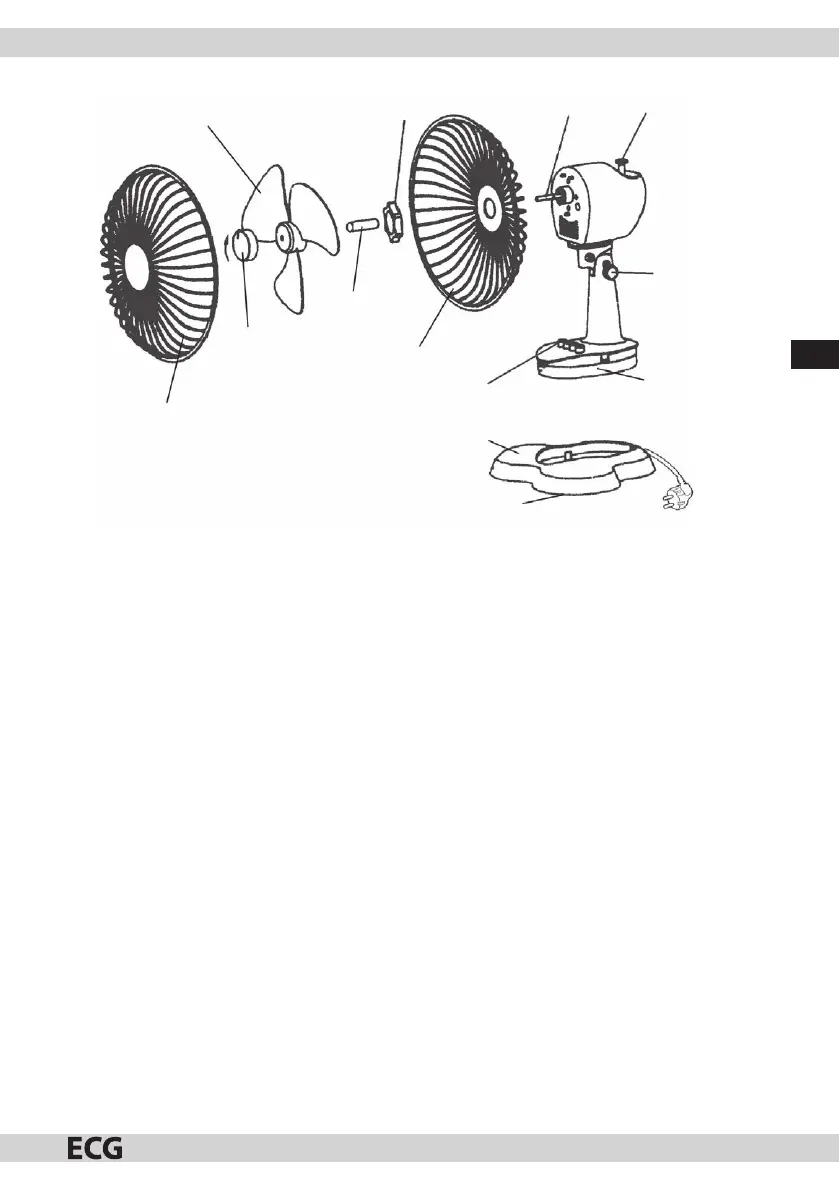 Untersatz des Tischventilators festgemacht ist, und in die Ö nungen inmitten des Untersatzes schrauben Sie