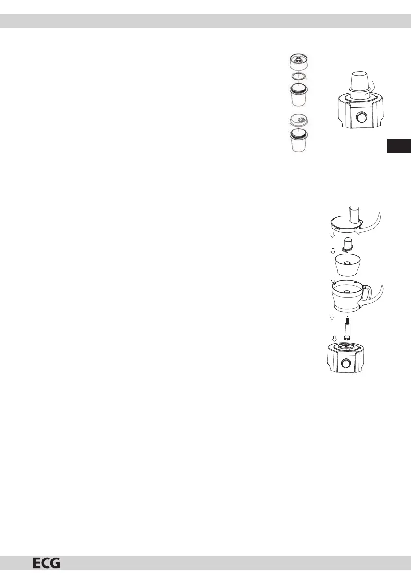 5. Zostavený mlynček nasaďte na základňu s motorom a otočením