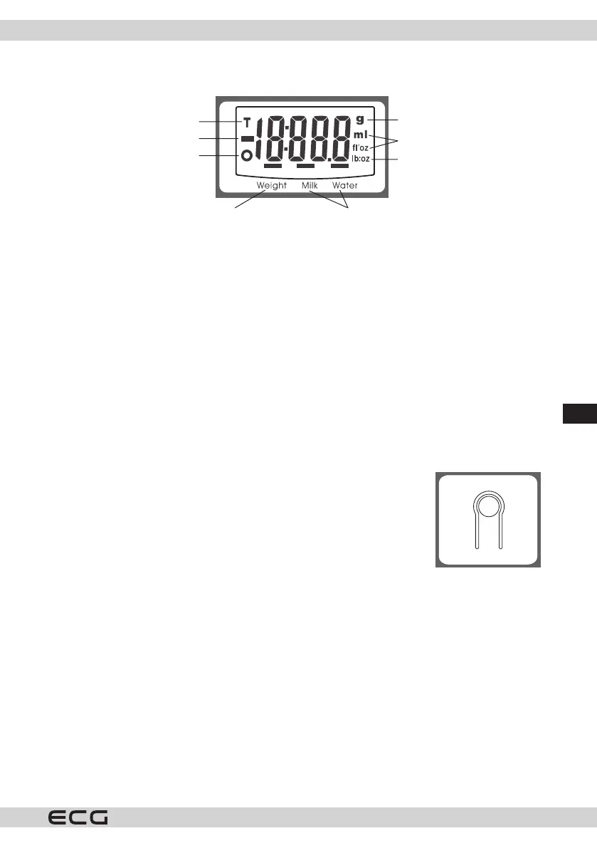 4. Za prikaz količine tečnosti, pritisnite taster MODE i odaberite jednu od opcija voda, mleko, nakon toga će