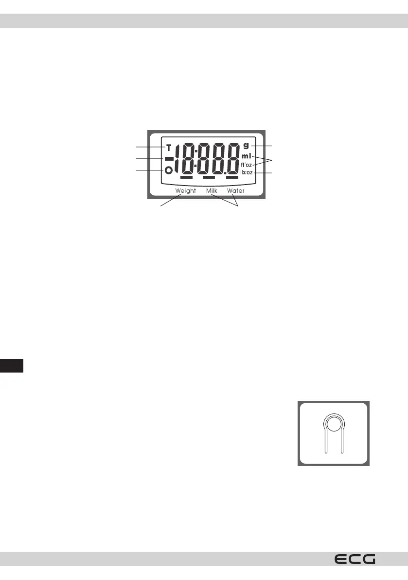 5. Coloque el objeto apesar sobre la balanza (en el bol) yel visor de LCD mostrará el peso medido del objeto.