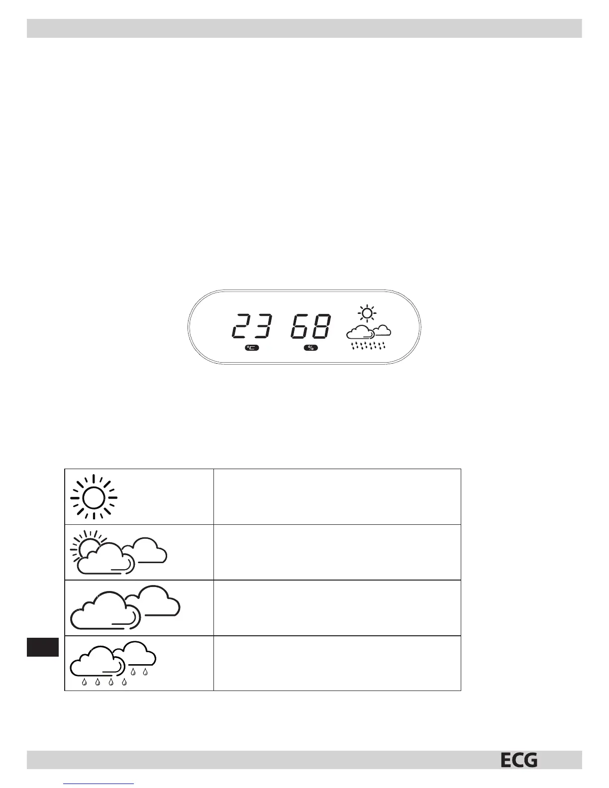 Note: It takes about 24 hours for the weather station to stabilize. The weather symbols on the display provide