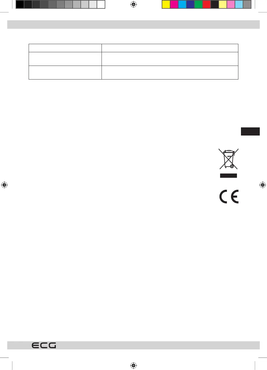 Hand over the product to the specied location for recycling electric and electronic equipment. Prevent