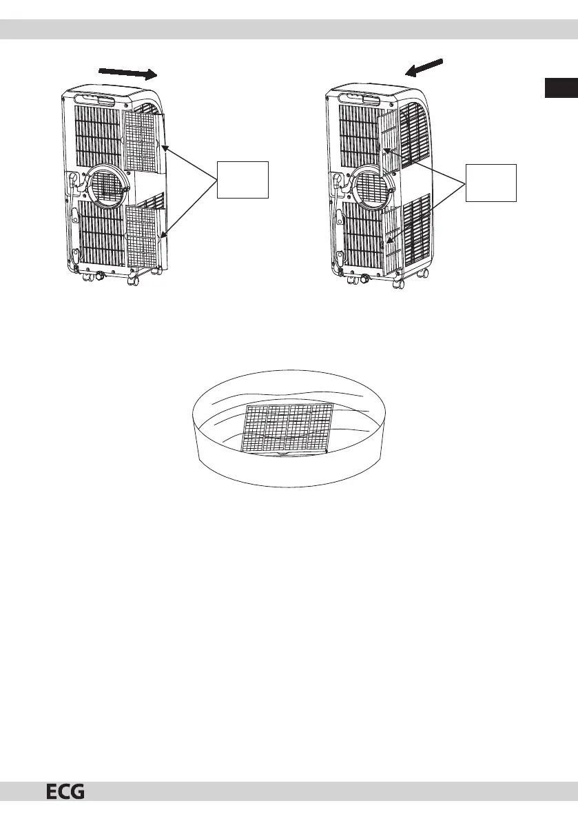 Při čištění vložte rámeček ltru výparníku a chladiče, ltrační síťku výparníku a chladiče do teplé vody