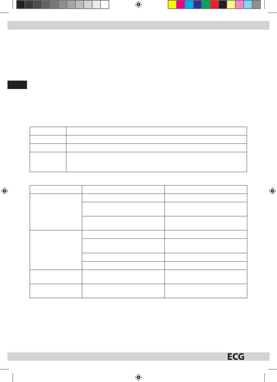 E4 Freeze protection: when the temperature of the spiral falls below 0° C, the appliance