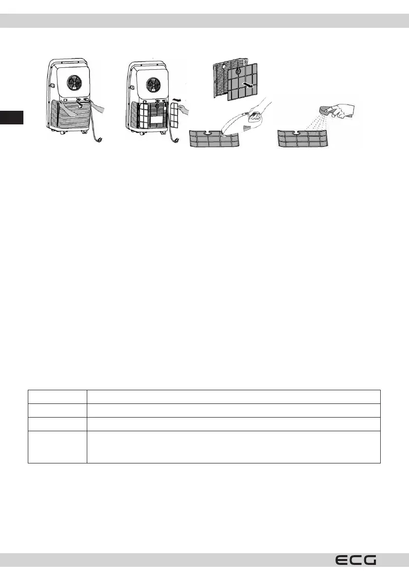 • Um einer Deformation des Filter vorzubeugen, diesen vor Hitze schützen und trocknen lassen.