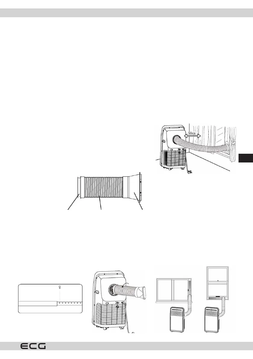 5. Pievienojiet izplūdes caurules plato galu pie loga blīvējuma strēmeles un nostipriniet to ar skrūvēmC.
