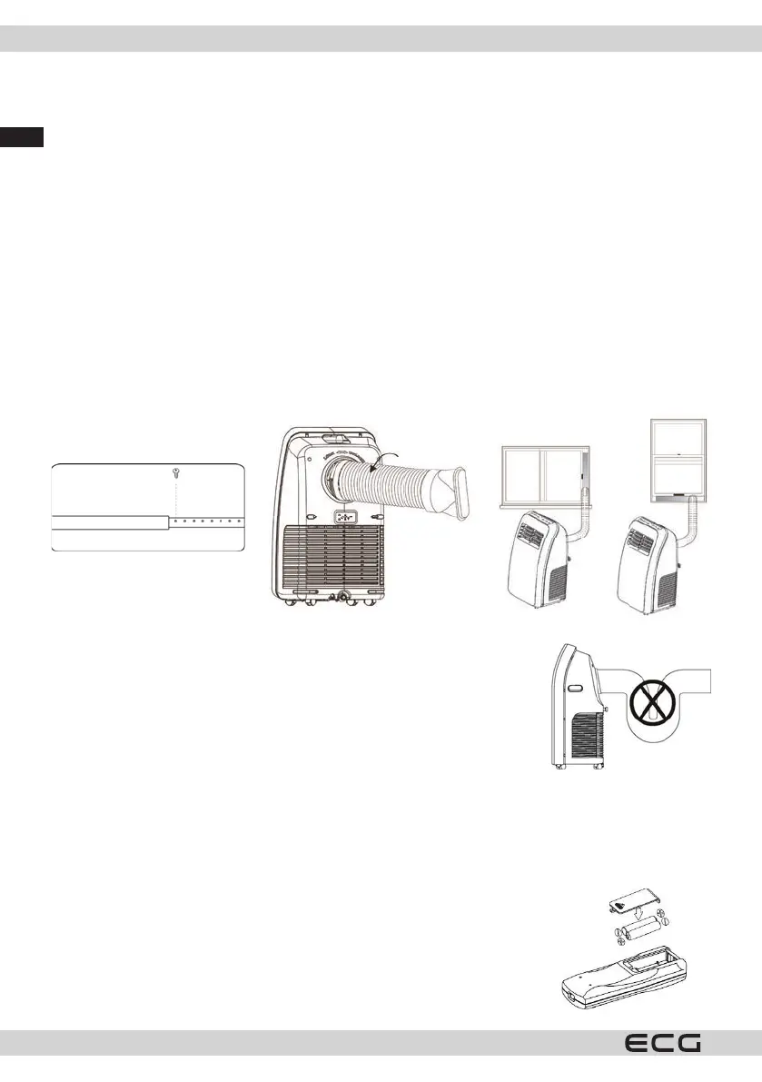 4. Auspuschlauch-Set mit Hilfe eines runden Konnektors am Warmluft-Ausgang auf der Rückseite der