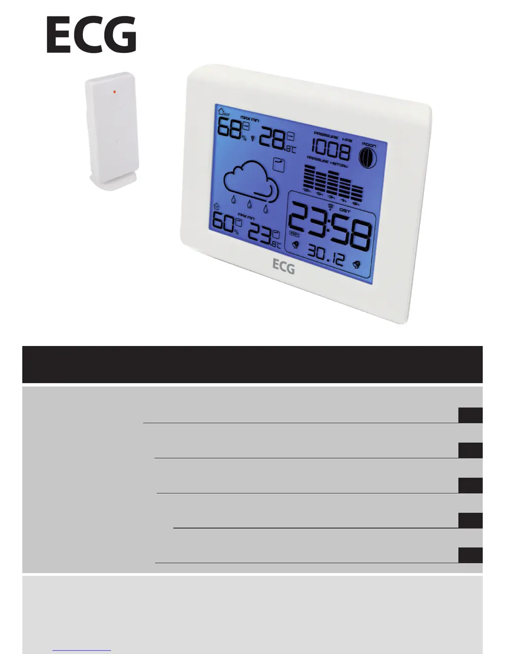 If the outdoor temperature and humidity aren't displaying on your ECG Weather Station, try the following: First, hold the MEM button on the weather forecast station. If that doesn't work, hold the MEM button and then press the RESET button on the outdoor sensor. Also, verify that the correct channel is selected on the station, with the default being “CH1” for Channel 1. Check the outdoor sensor's battery level and replace them if the discharged battery icon is visible. Finally, ensure that there are no electronic devices causing interference between the station and the sensor.