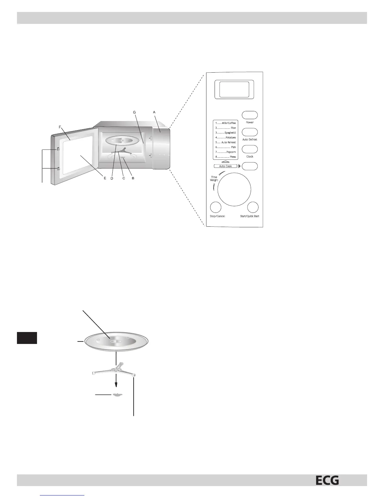 Bezeichnungen der Mikrowellenherdteile und des Zubehörs