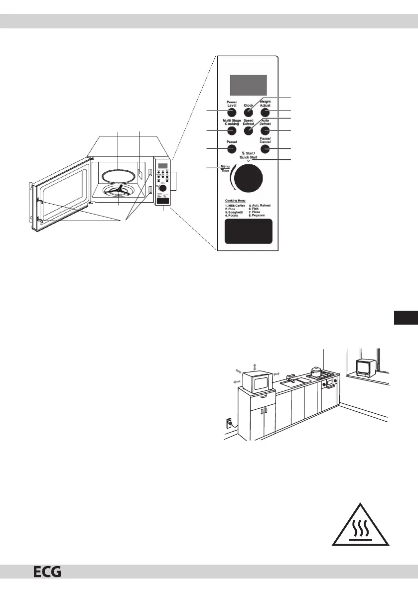 hőforrás közelébe telepíti, elveszítheti a rá nyújtott jótállást. A mikrohullámú sütőnek szabadon kell állnia, tilos