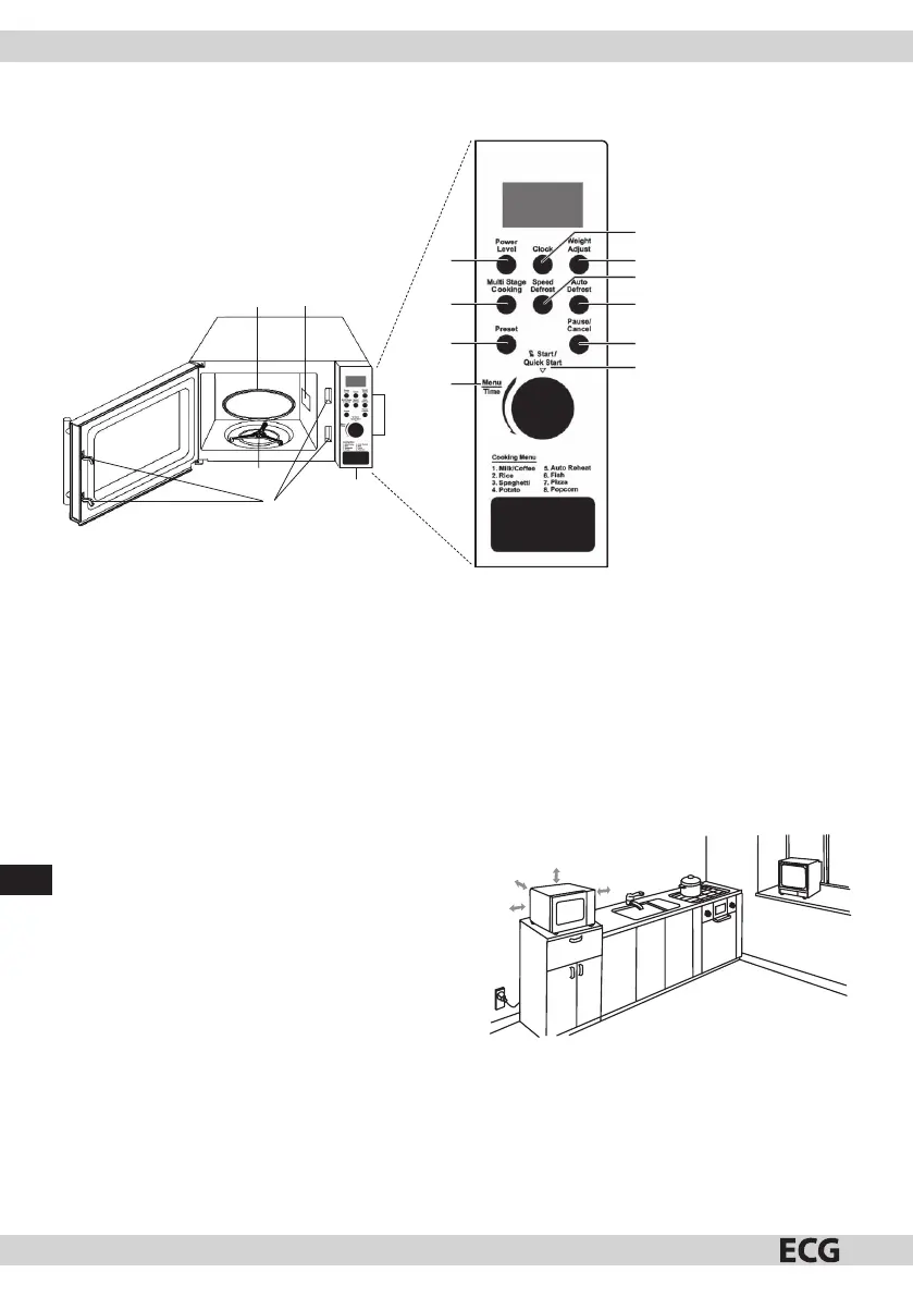 1. Den Mikrowellenherd stellen Sie gerade auf eine Oberäche,