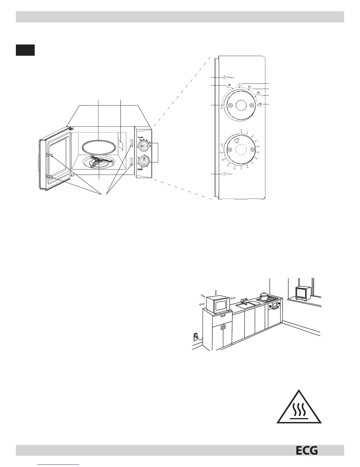 Mikrovlnná trouba je určena pro používání ve volném prostoru anesmí se umisťovat do skříňky.