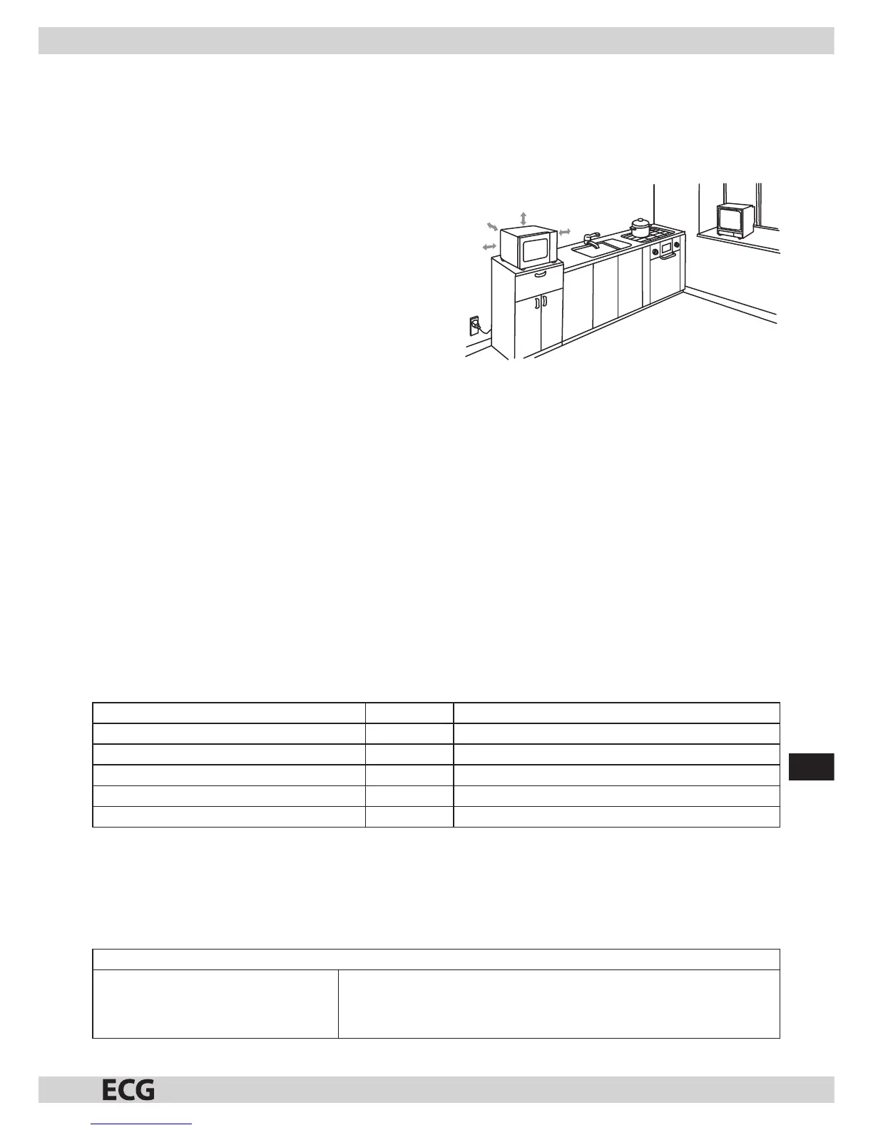 1) Über dem Mikrowellenherd lassen Sie mindestens 30 cm