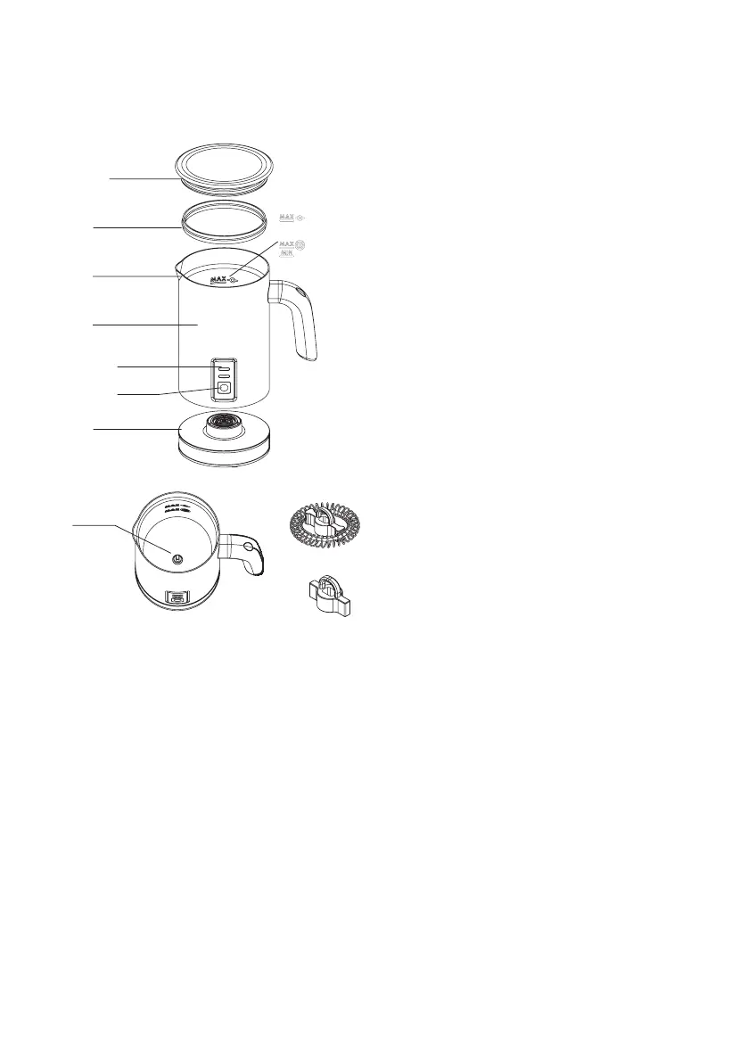 4. Frother container: Stainless steel surface, non-stick