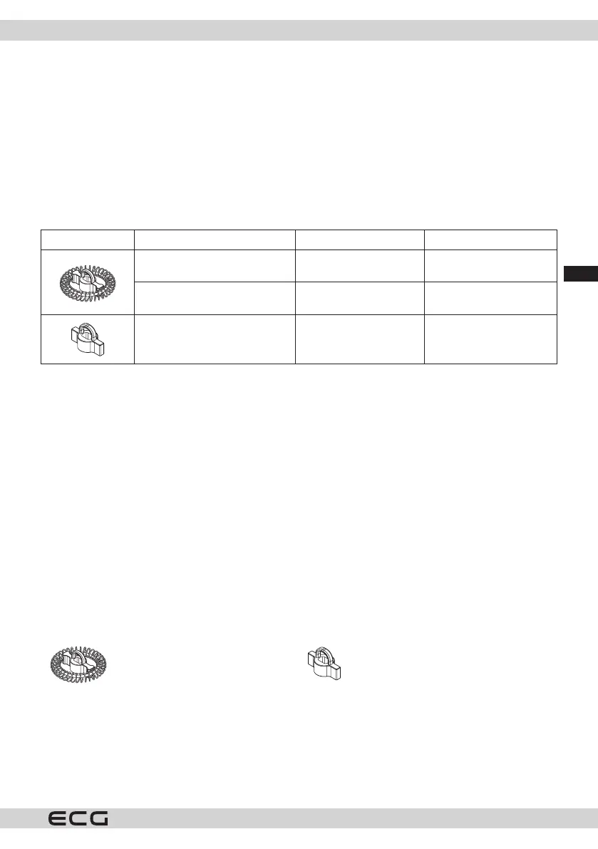 1. Izvēlieties atbilstošu piederumu (skatiet tabulu tālāk tekstā) un ievietojiet to putotāja traukā.