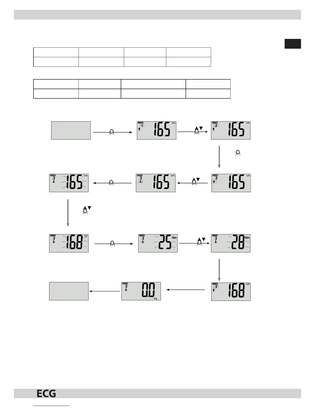 uloženy do paměti ana displeji se zobrazí „0“, což znamená, že lze spustit měření obsahu tělesného tuku.