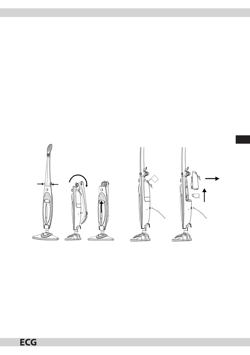 Przed wyjęciem lub montażem zbiornika na wodę upewnij się, że mop jest odłączony od zasilania. Pociągnij