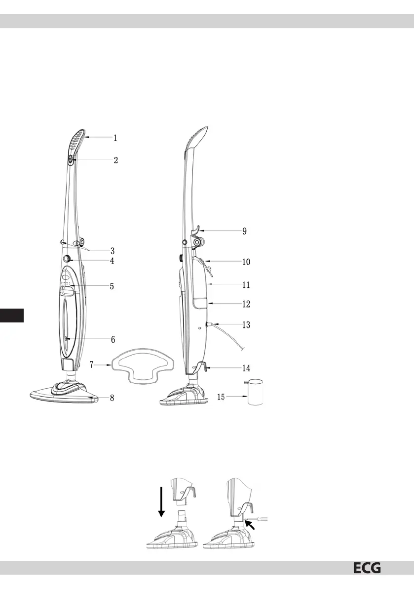 a szennyeződéseket és zsírfoltokat. A keskeny és könnyű készülék a padló tisztítása közben gőzt bocsát