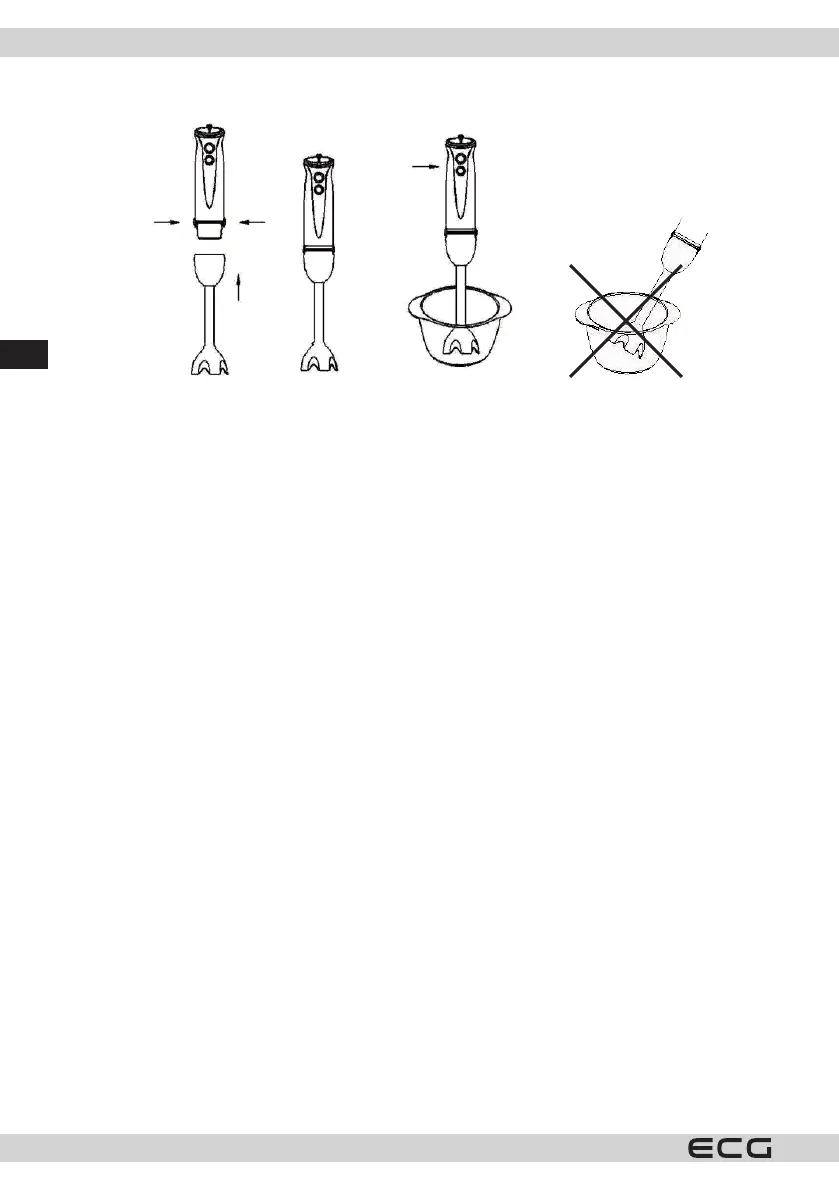 des Stabmixers auf den Boden des Behälters und mischen Sie einige Sekunden. Vor der ersten Verwendung