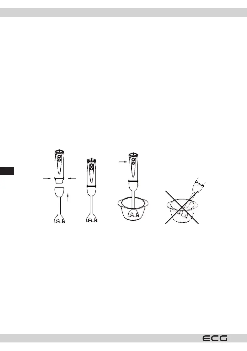 Pre prve upotrebe uređaja, napunite jednu posudu vodom, potopite mikser imutite nekoliko sekundi. Zatim