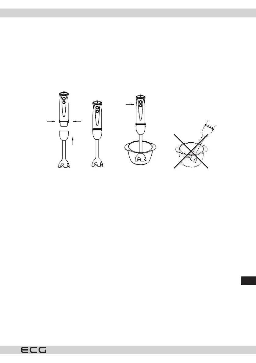 Pirms blendera pirmās lietošanas reizes piepildiet pusi trauka ar ūdeni, iegremdējiet blendera asmeni līdz